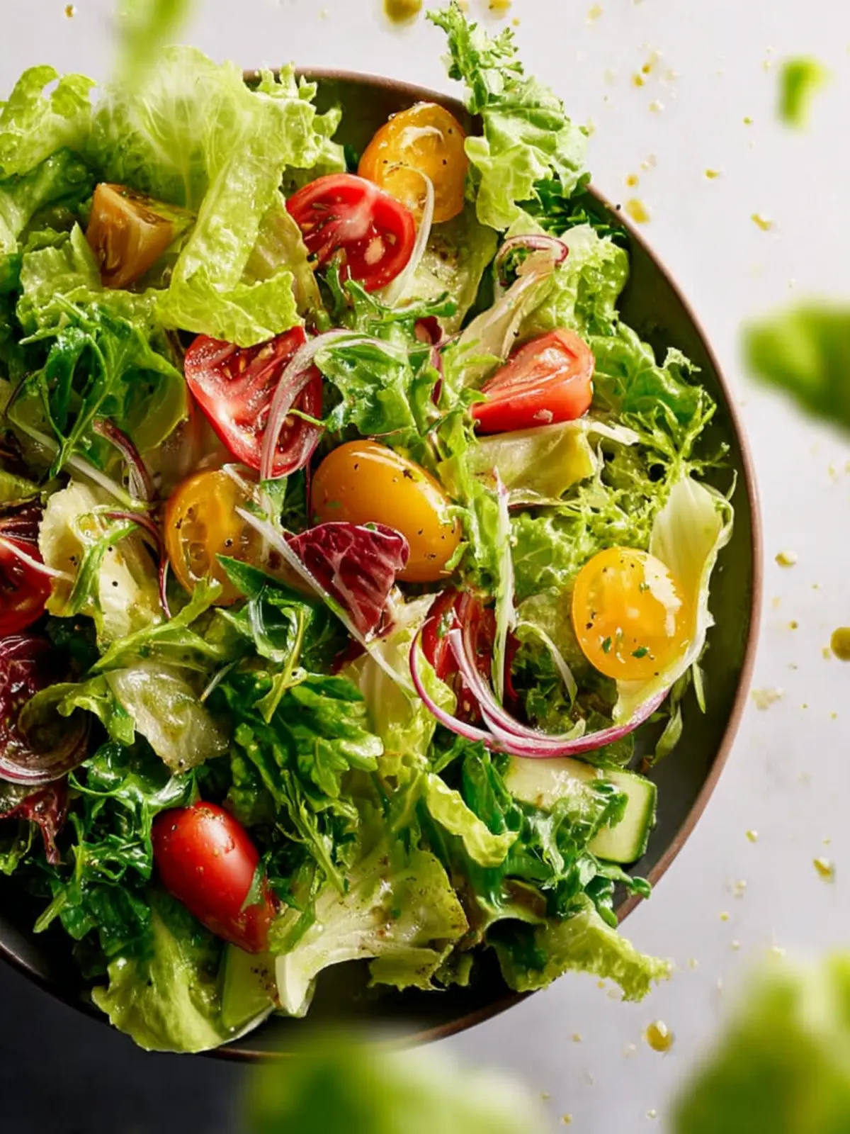 • Classic Vinaigrette: A mix of olive oil, balsamic vinegar, Dijon mustard, and a pinch of salt never fails.
