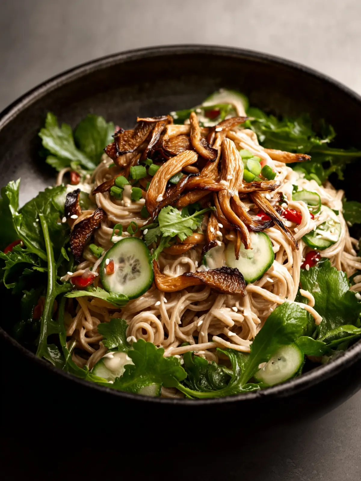 Chilled Soba Noodle Salad: Irresistibly Crispy Shiitake Treat