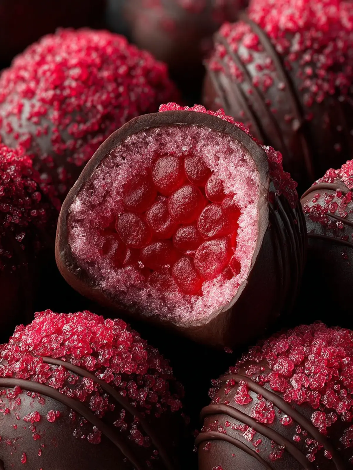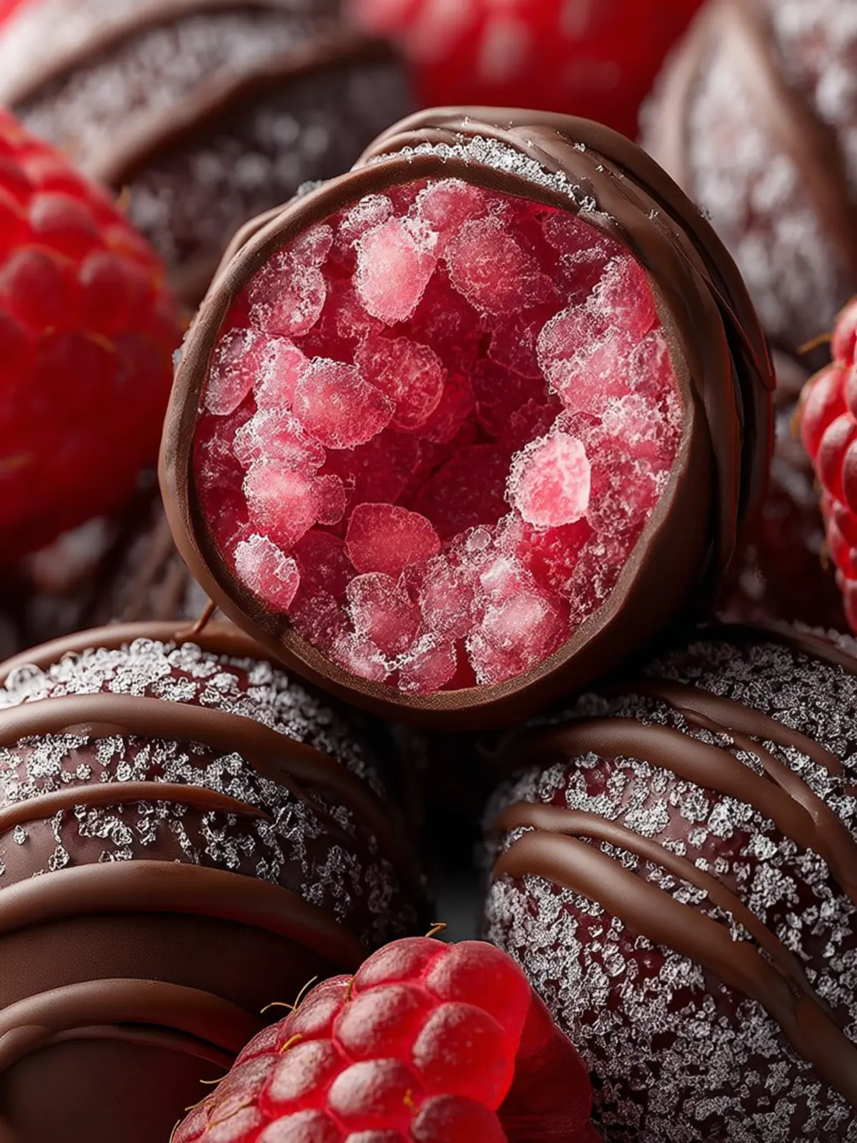 Delicious chocolate covered raspberry balls, perfect for a sweet treat!