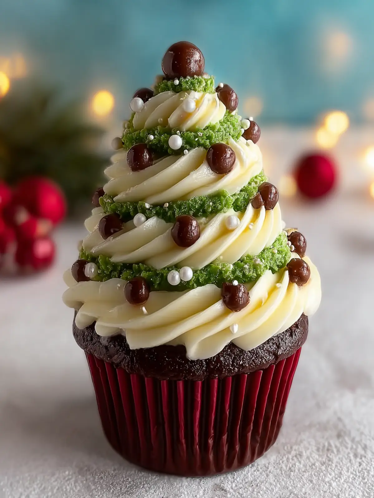 Display on a Festive Platter: Arrange the cupcakes on a decorative platter or a tiered cake stand to create a stunning visual. Add some edible glitter or fake snowflakes around them for that extra holiday magic.
