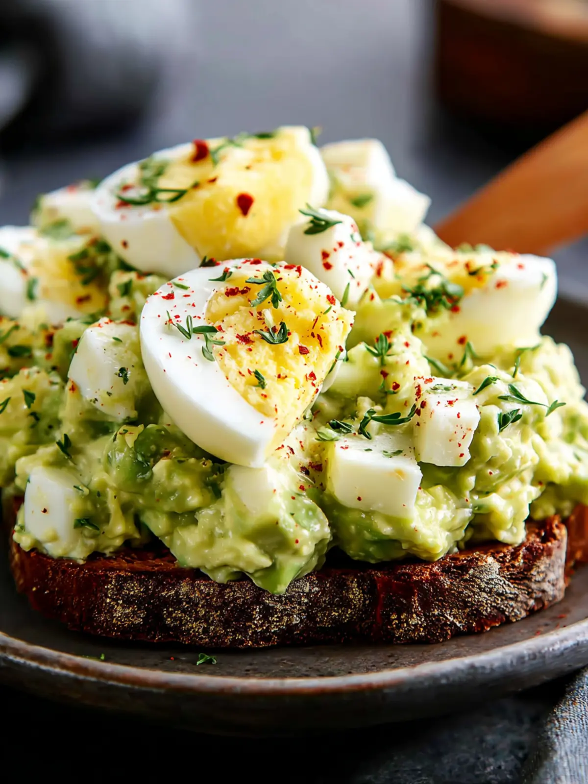 Imagine starting your day with a slice of toasted whole-grain bread topped with a generous spread of creamy avocado egg salad. The warm, crunchy bread contrasts beautifully with the rich, smooth texture of the salad. You can add vibrant slices of tomato or a sprinkle of microgreens for a burst of color and flavor. Not only does this make for a delightful breakfast, but it’s also a perfect brunch option that’s light yet satisfying.