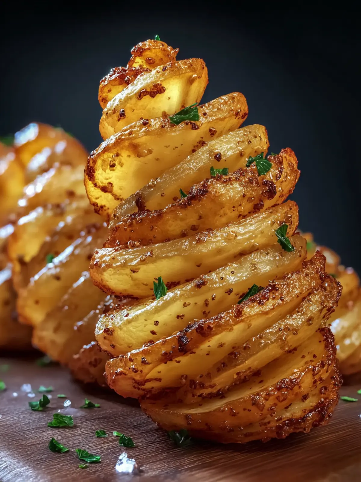 This recipe is straightforward; all you need are fresh potatoes and a few simple seasonings. The joy of preparing Crispy Tornado Potatoes is in the spiraling technique that turns the ordinary into the extraordinary. With a bit of practice, you’ll find the rhythm of slicing and twisting, making it a fun activity to share with friends or family.