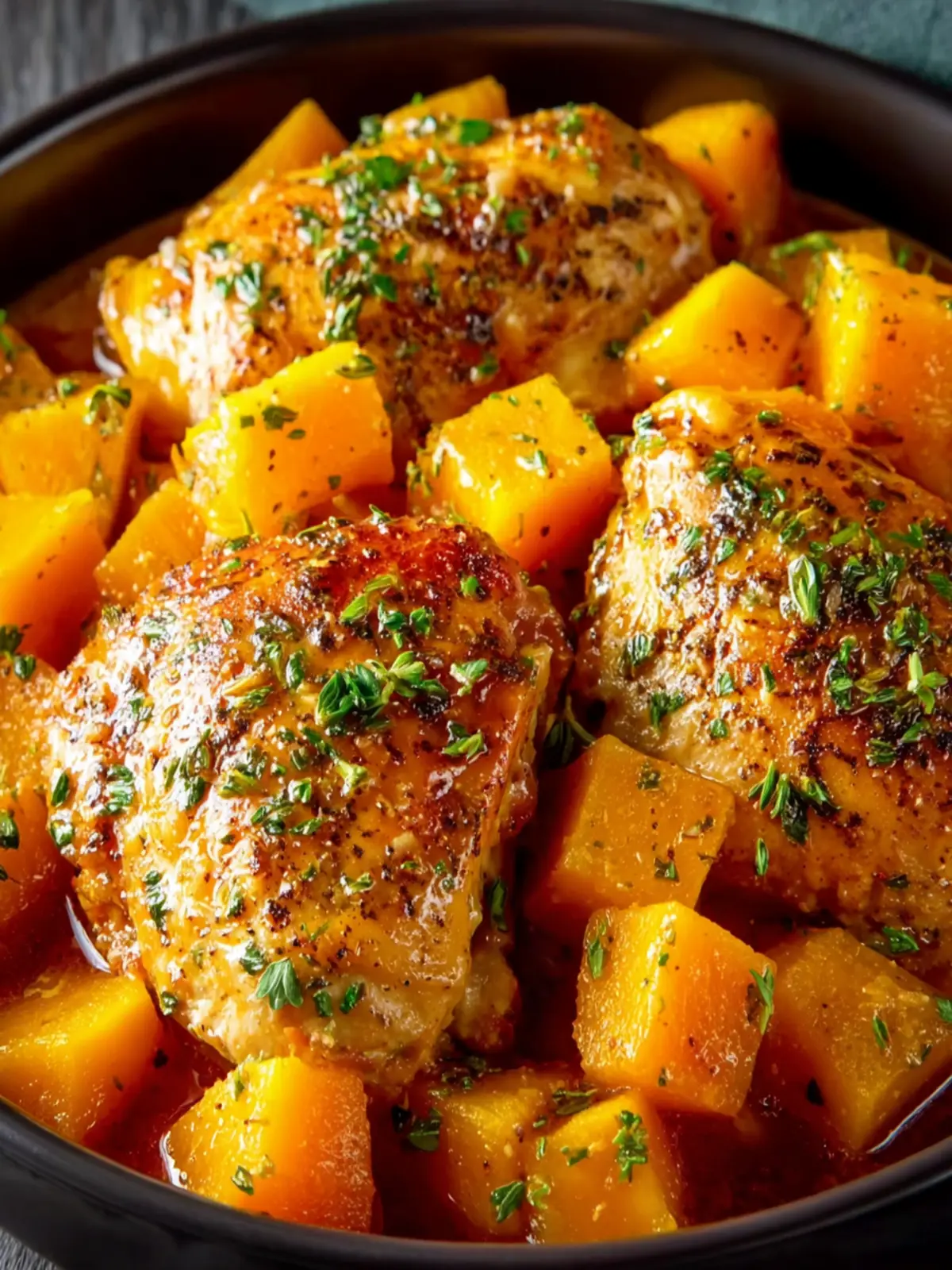 Inviting Appetizer: If you’re hosting friends, offer small servings of the chicken and butternut squash as a warm appetizer, garnished with chopped herbs for a touch of elegance.