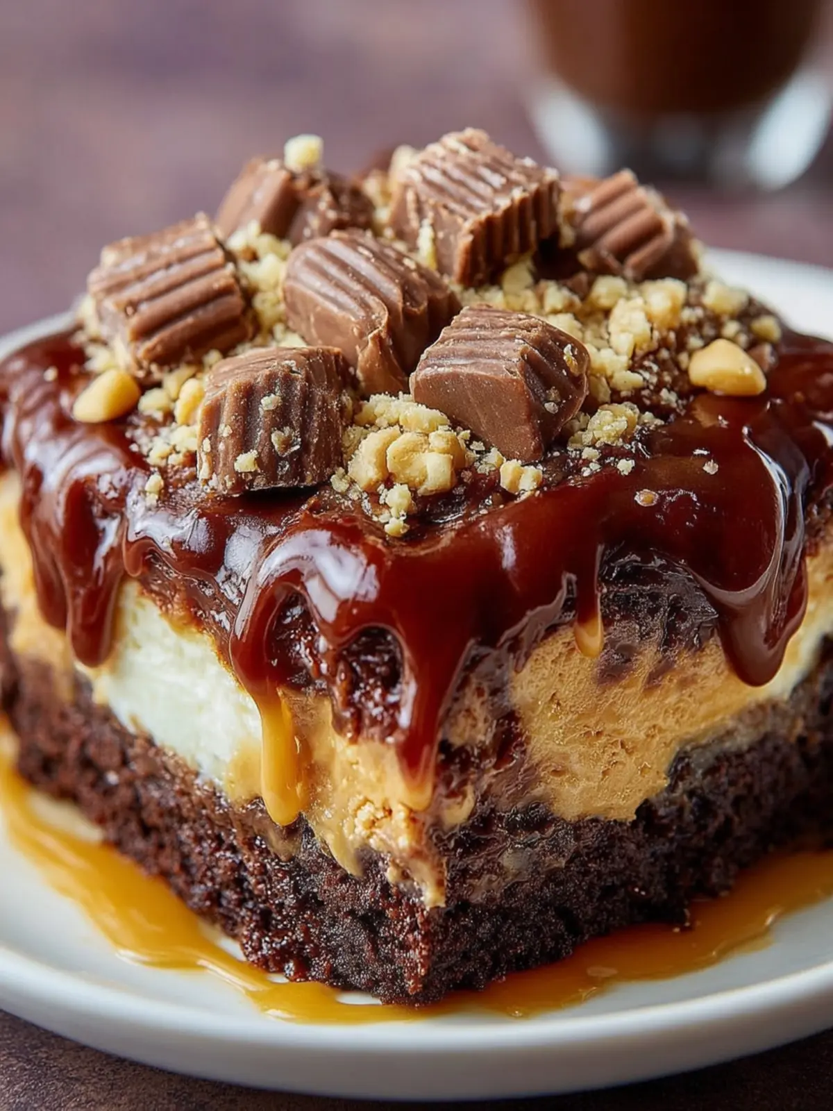 A rich and indulgent cake perfect for chocolate and peanut butter lovers.
