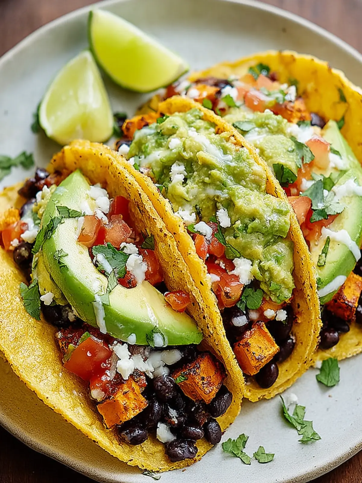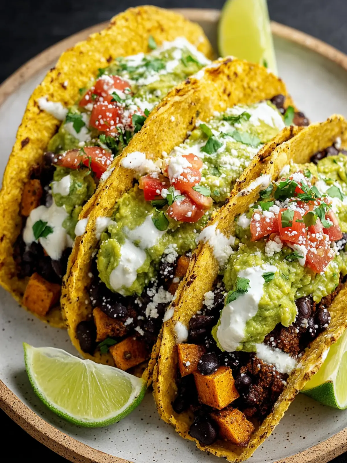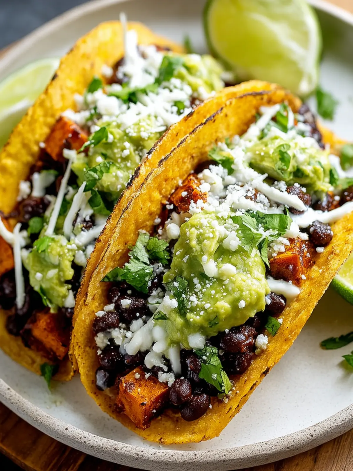 Nutrient-Rich Ingredients: These tacos feature sweet potatoes and black beans, both packed with vitamins and fiber. Sweet potatoes are a fantastic source of beta-carotene, while black beans provide protein and essential amino acids. Together, they create a satisfying meal that fuels your busy lifestyle.