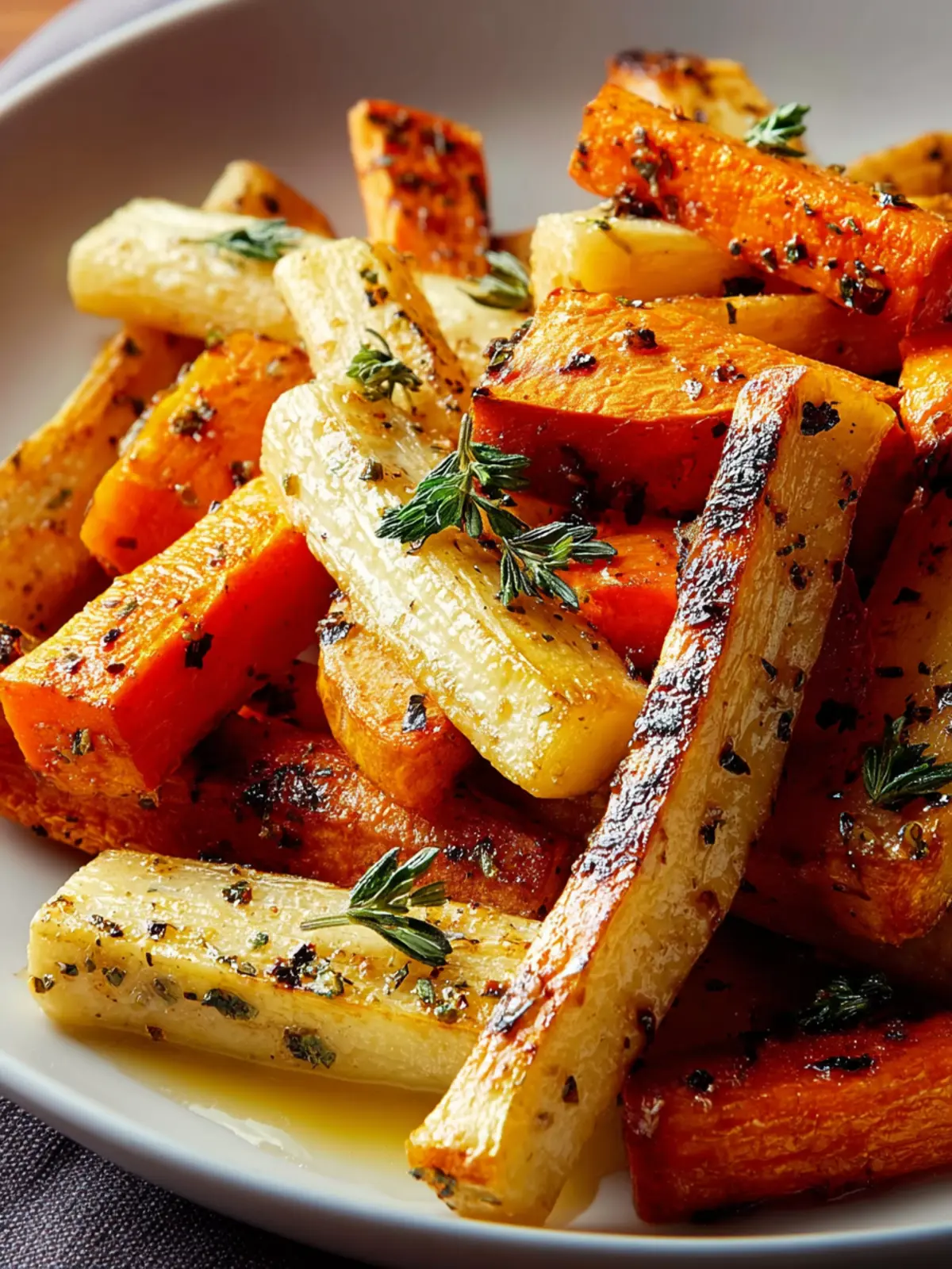 A delicious roasted vegetable dish combining parsnips and sweet potatoes, perfect as a side.