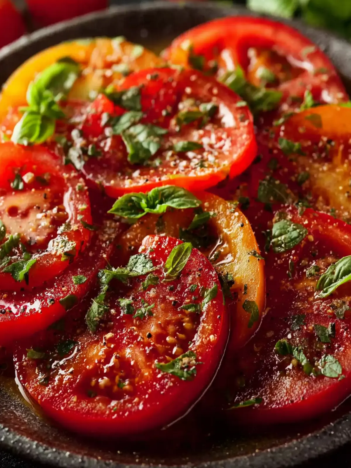 Vinegar: A splash of balsamic or red wine vinegar brings acidity that perfectly balances the sweetness of the tomatoes. This contrast is what makes marinated tomato salad so refreshing.