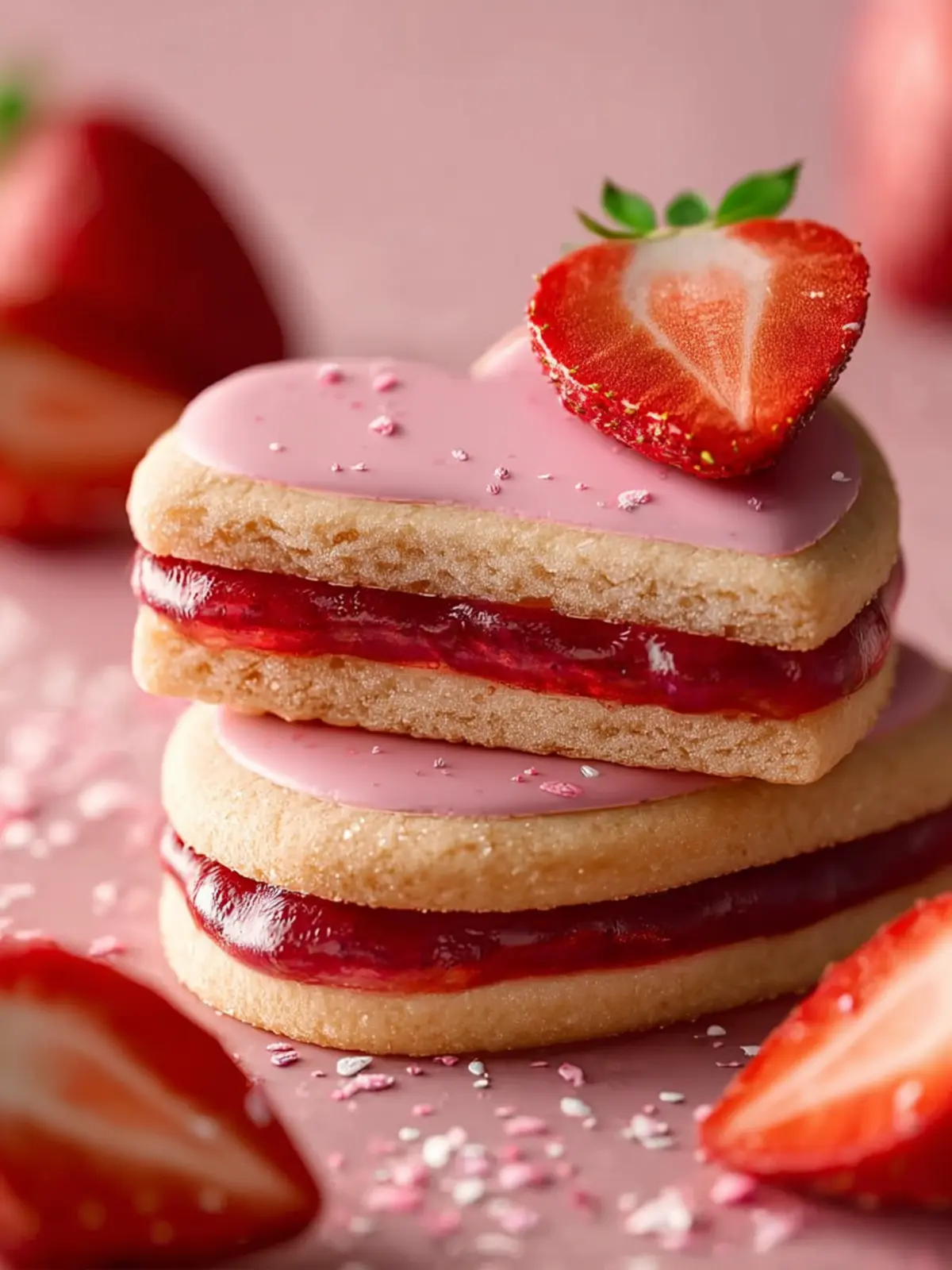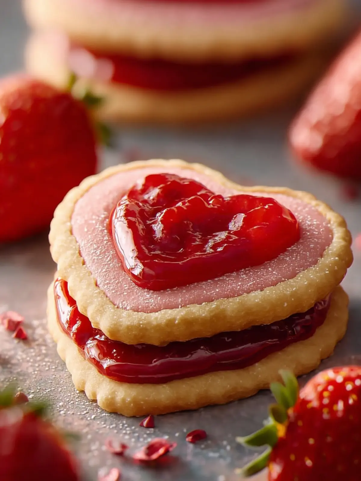 Delicious strawberry jam sandwich cookies that are light and fluffy, perfect for any occasion.
