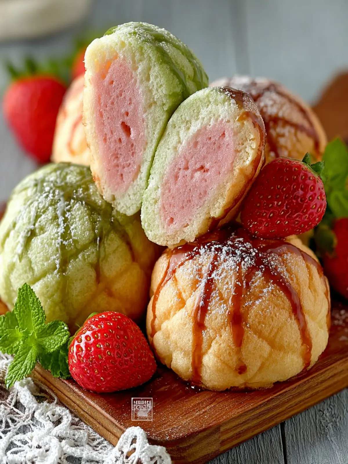 Infuse your sweet Japanese melon pan with a splash of flavor by incorporating fresh fruit into the dough. Chopped strawberries or raspberries can add a tart contrast to the sweetness, making for a refreshing summer option. You can even create a burst of flavor by layering thin slices of fruit on top before baking—imagine biting into a warm melon pan with gooey fruit goodness!