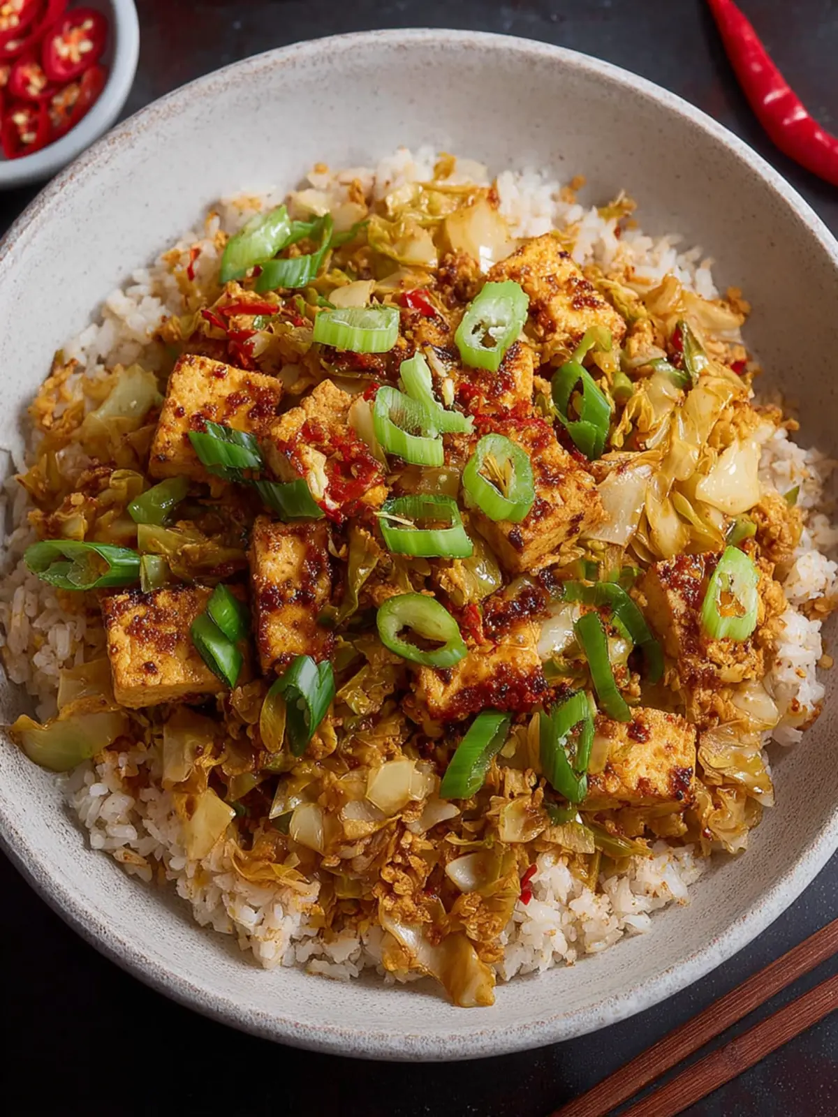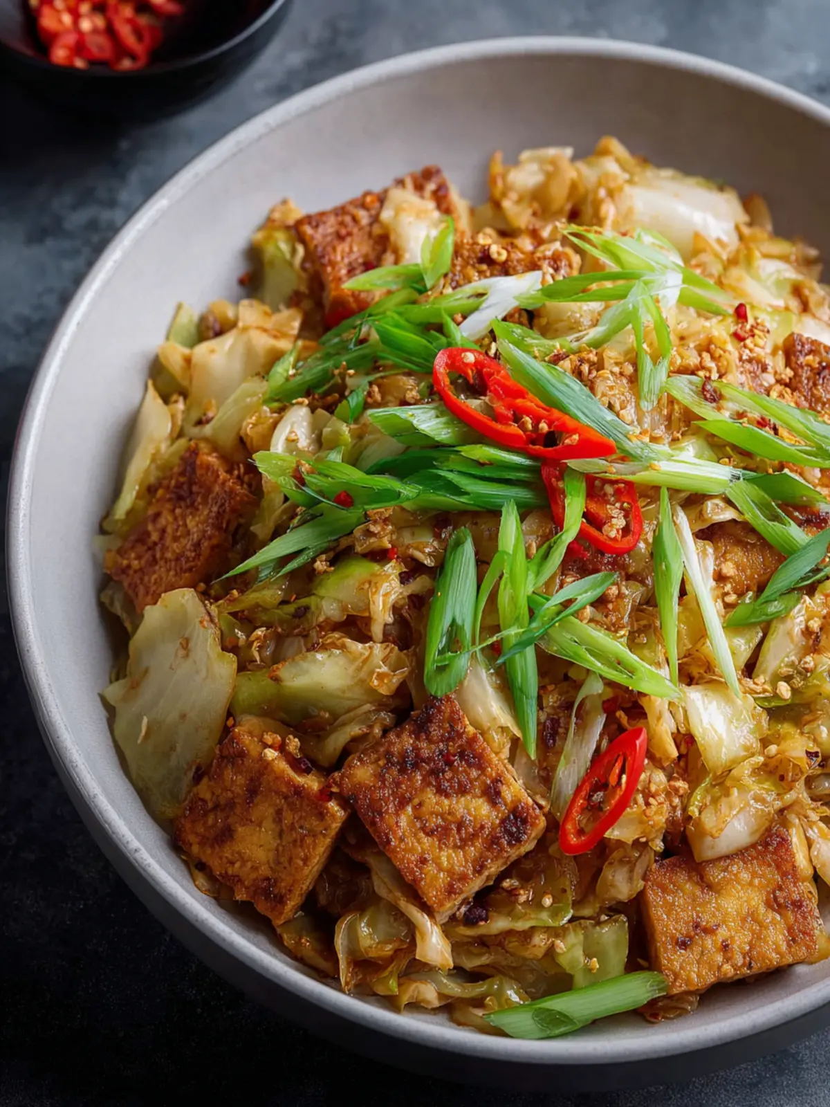 A delicious and healthy tofu stir-fry with cabbage and a savory sauce.
