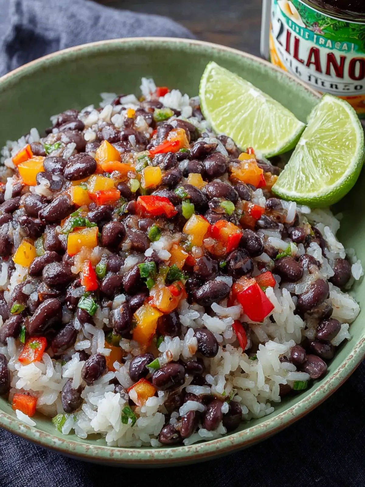 A traditional Costa Rican dish made with rice and black beans, flavored with onions, peppers, and Salsa Lizano.