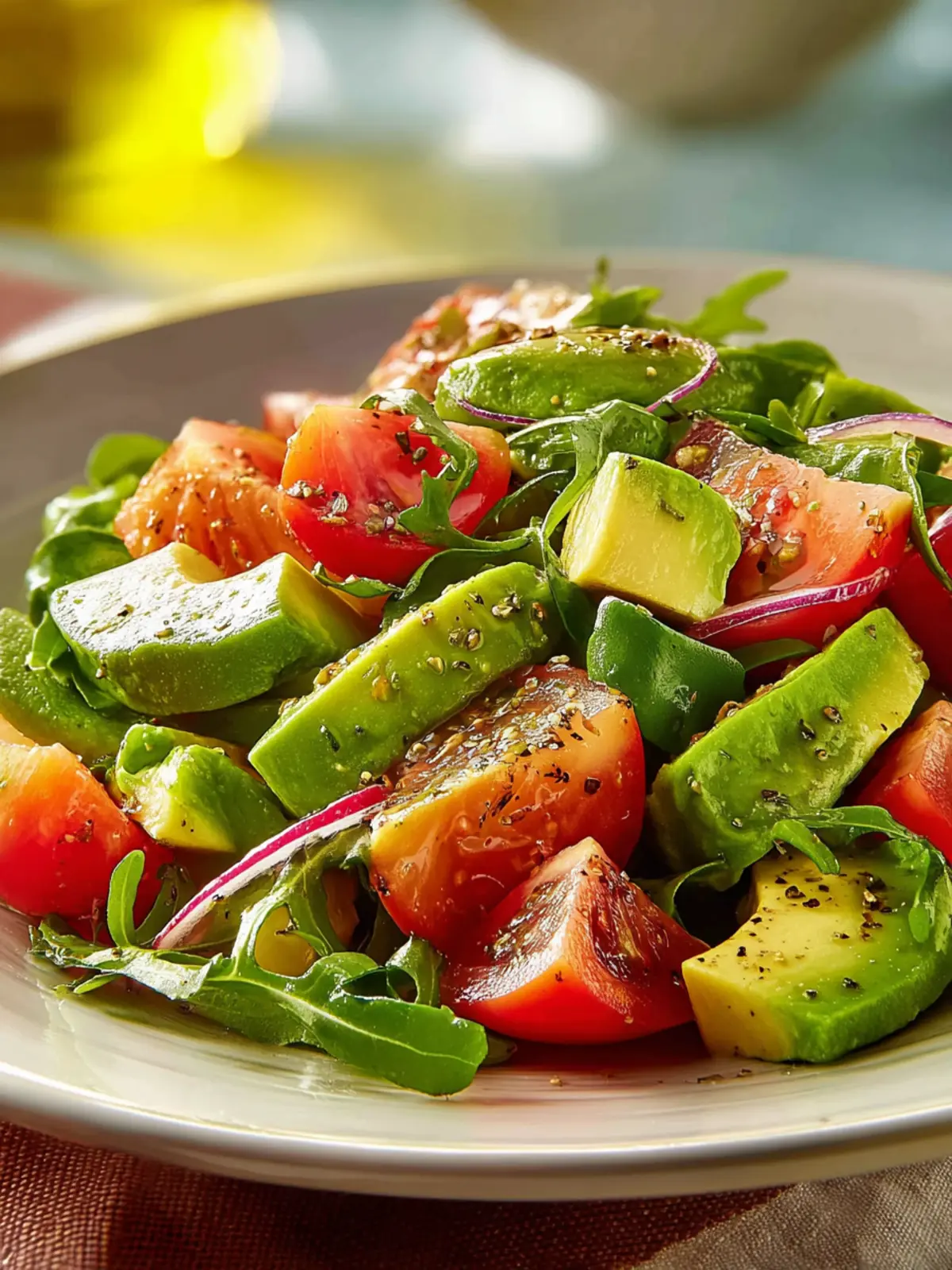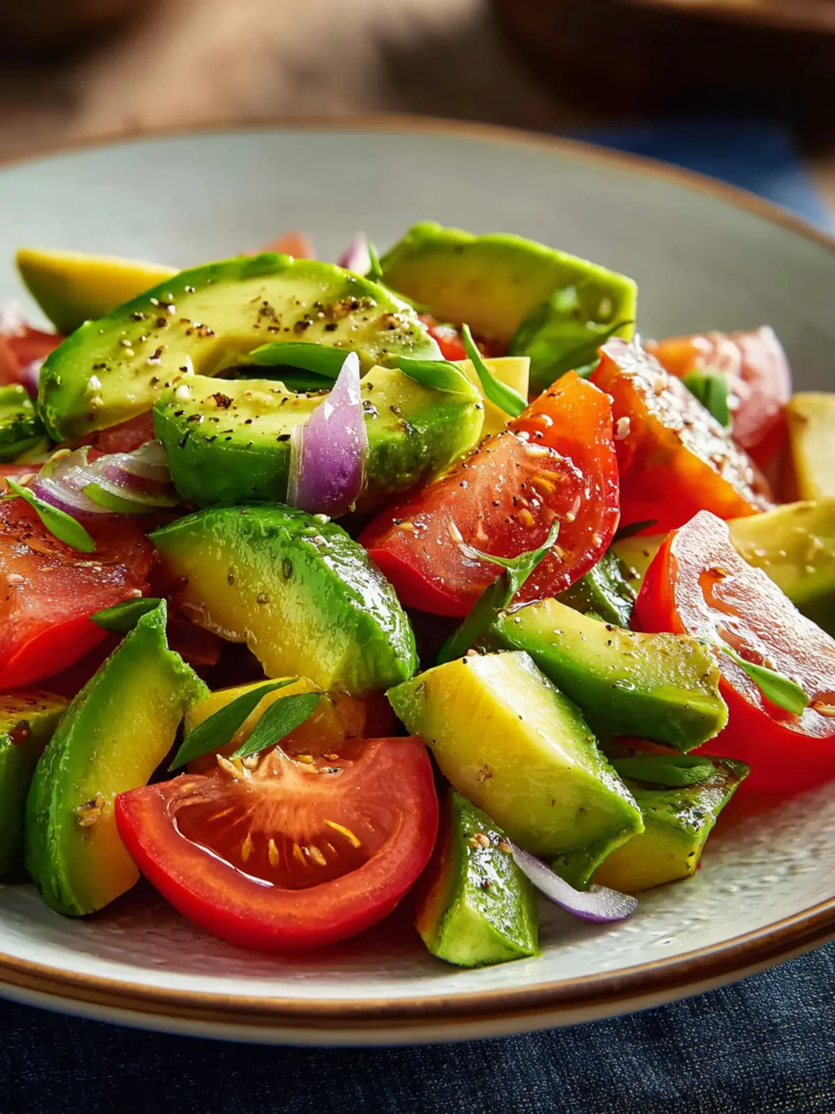 Health Benefits: Avocados are not only delicious; they are also loaded with healthy fats, vitamins, and fiber, making this salad a powerhouse of nutrients. Pair that with the crunch of fresh vegetables, and you’ve got a dish that’s nourishing and satisfying.